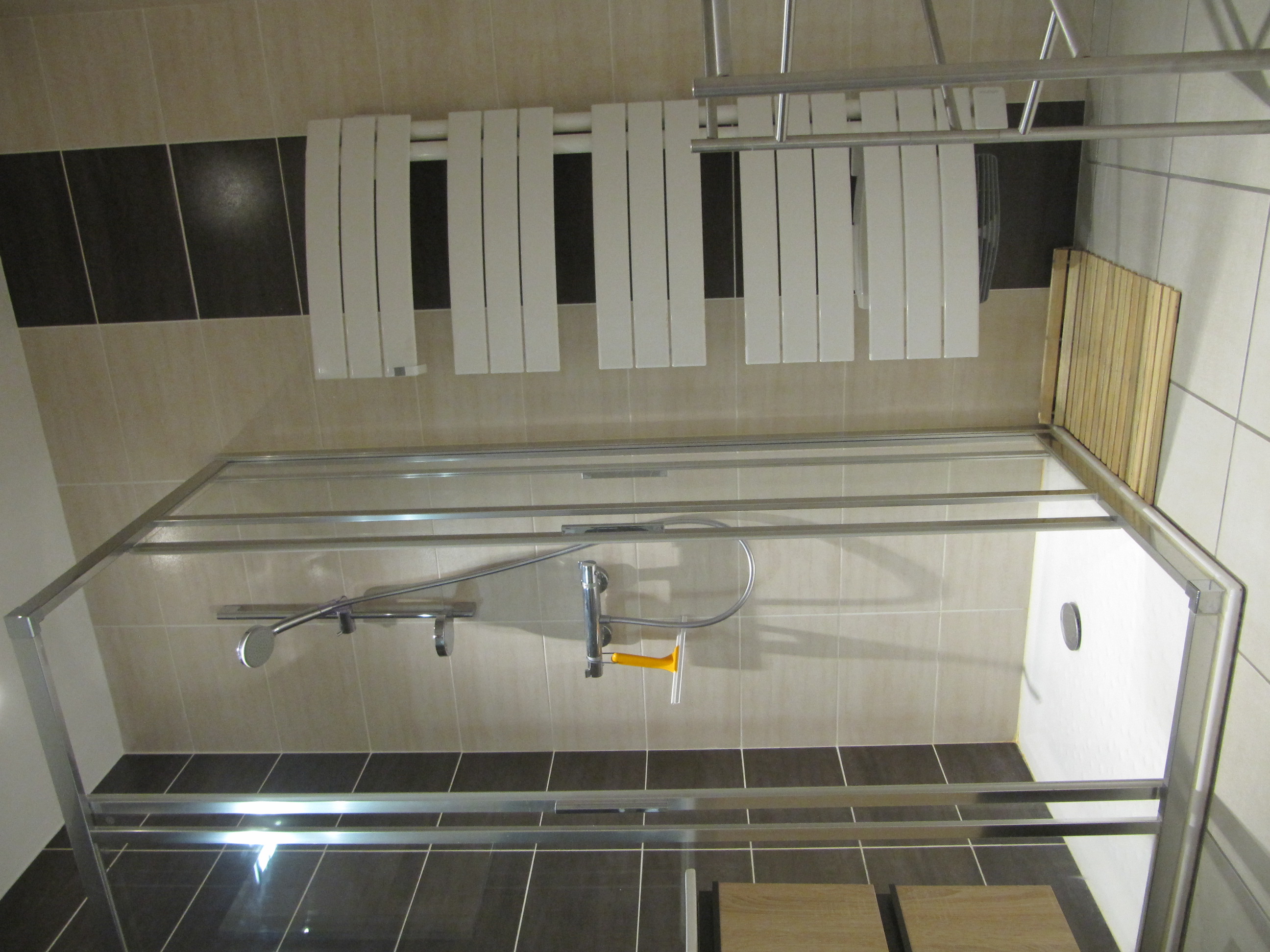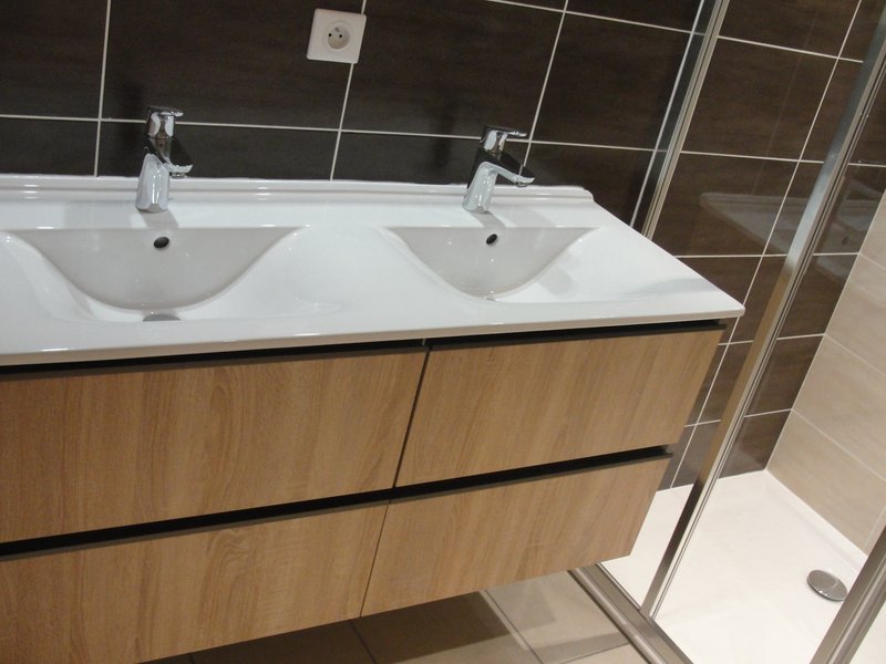 salle d'eau avec douche et lavabo double vasque