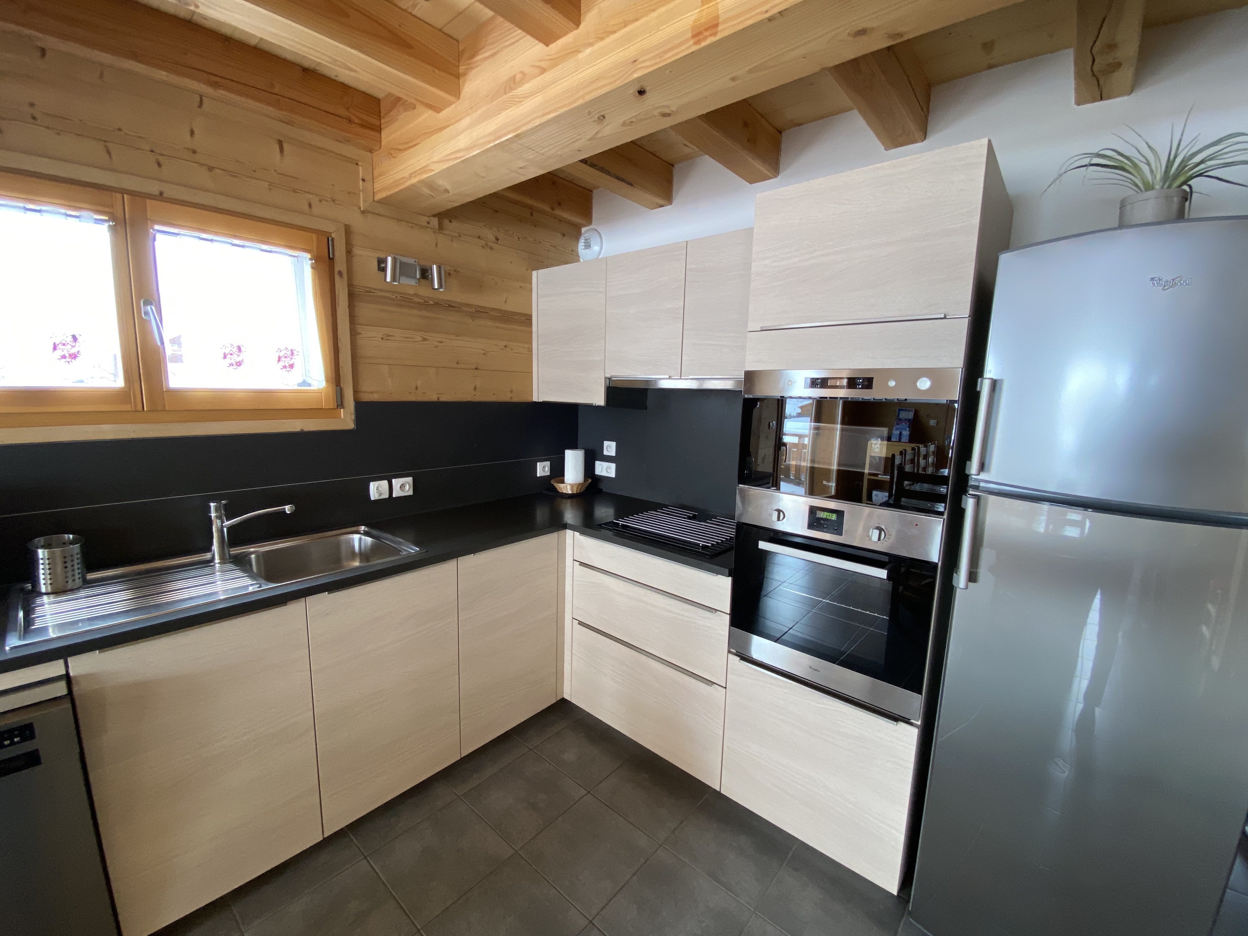 coin cuisine avec 3 plaques à induction, lave vaisselle, four, four à micro-onde, réfrigérateur, congélateur, cafetière, bouilloire et grille-pain électriques ...