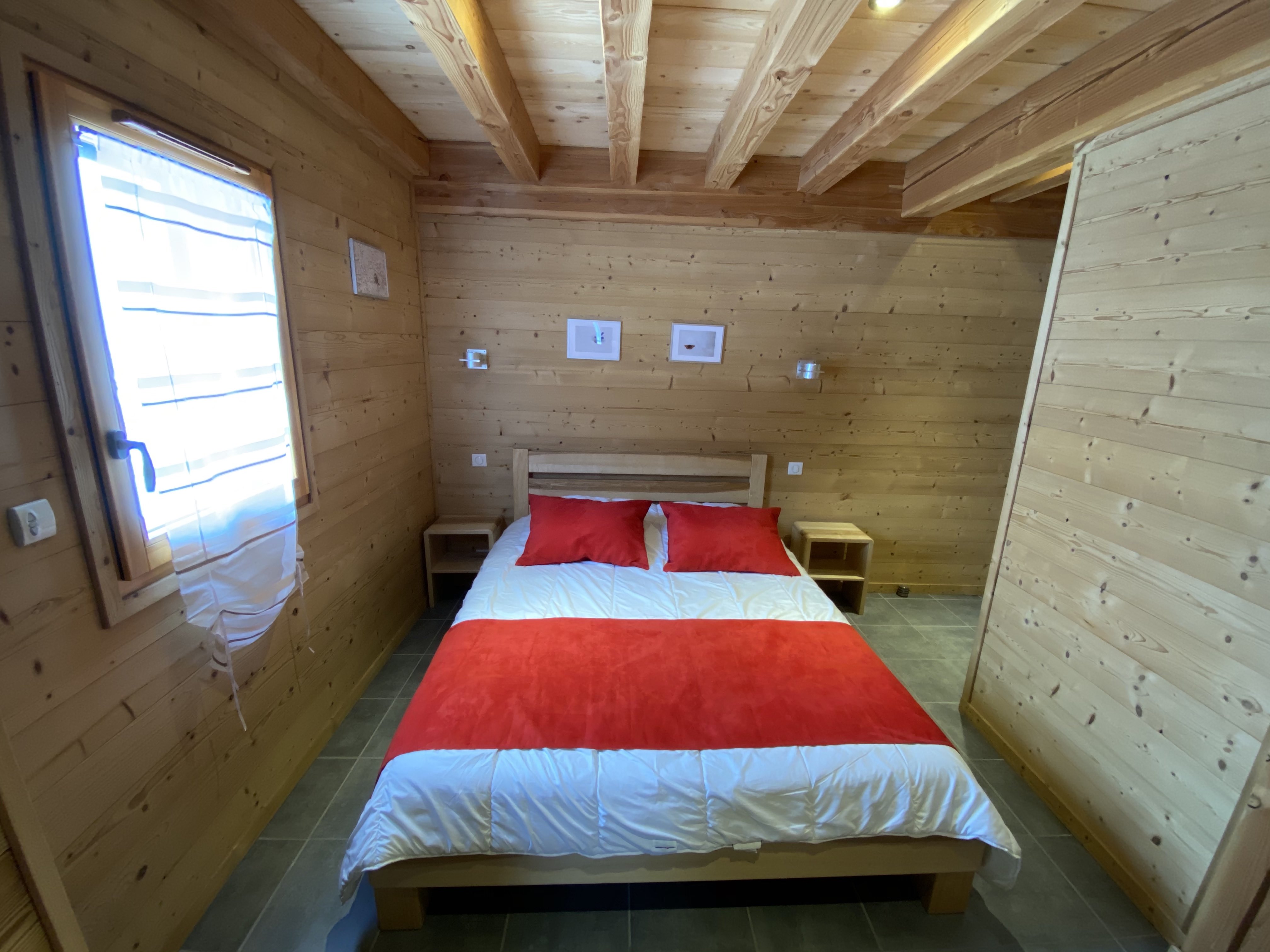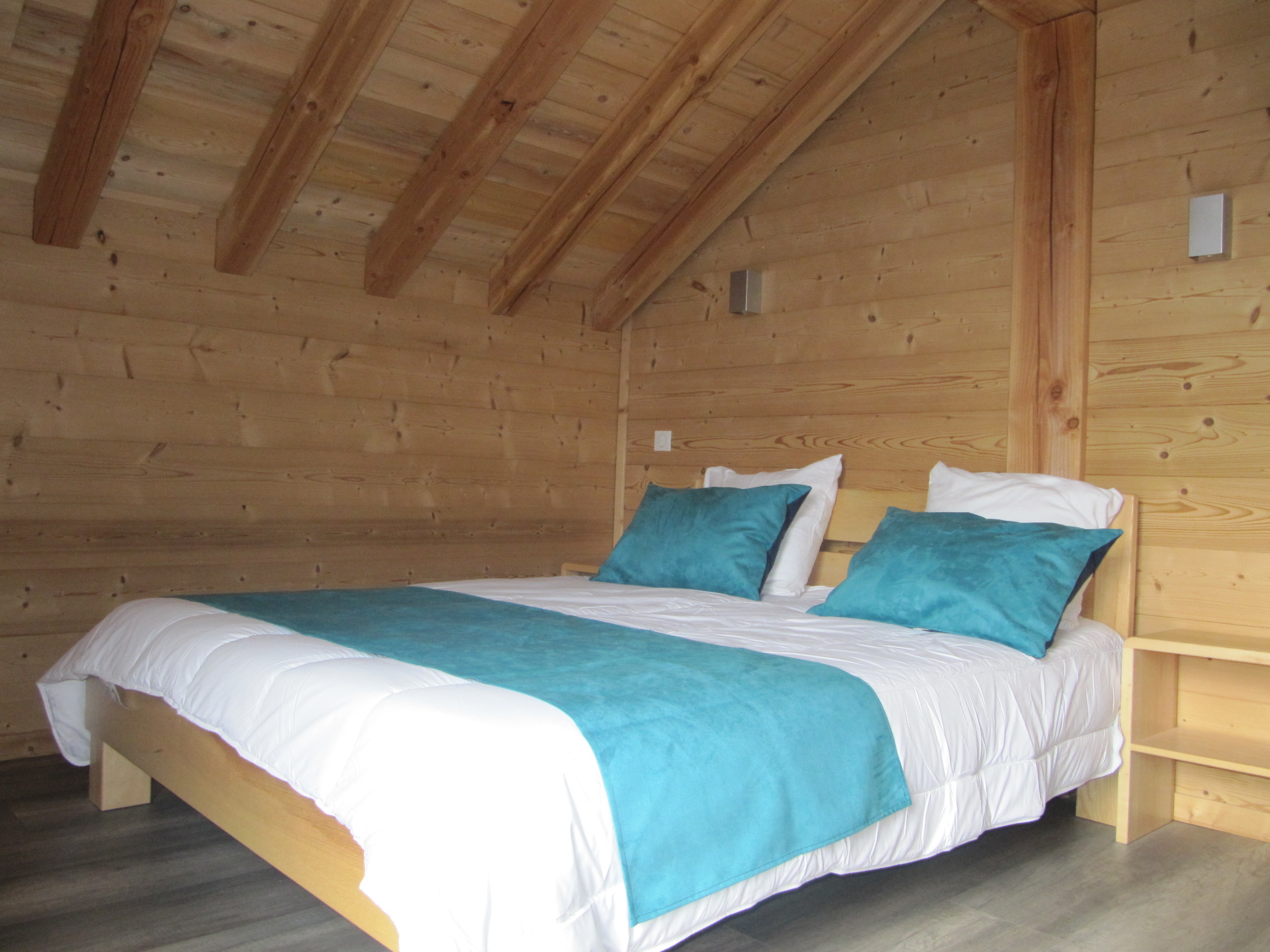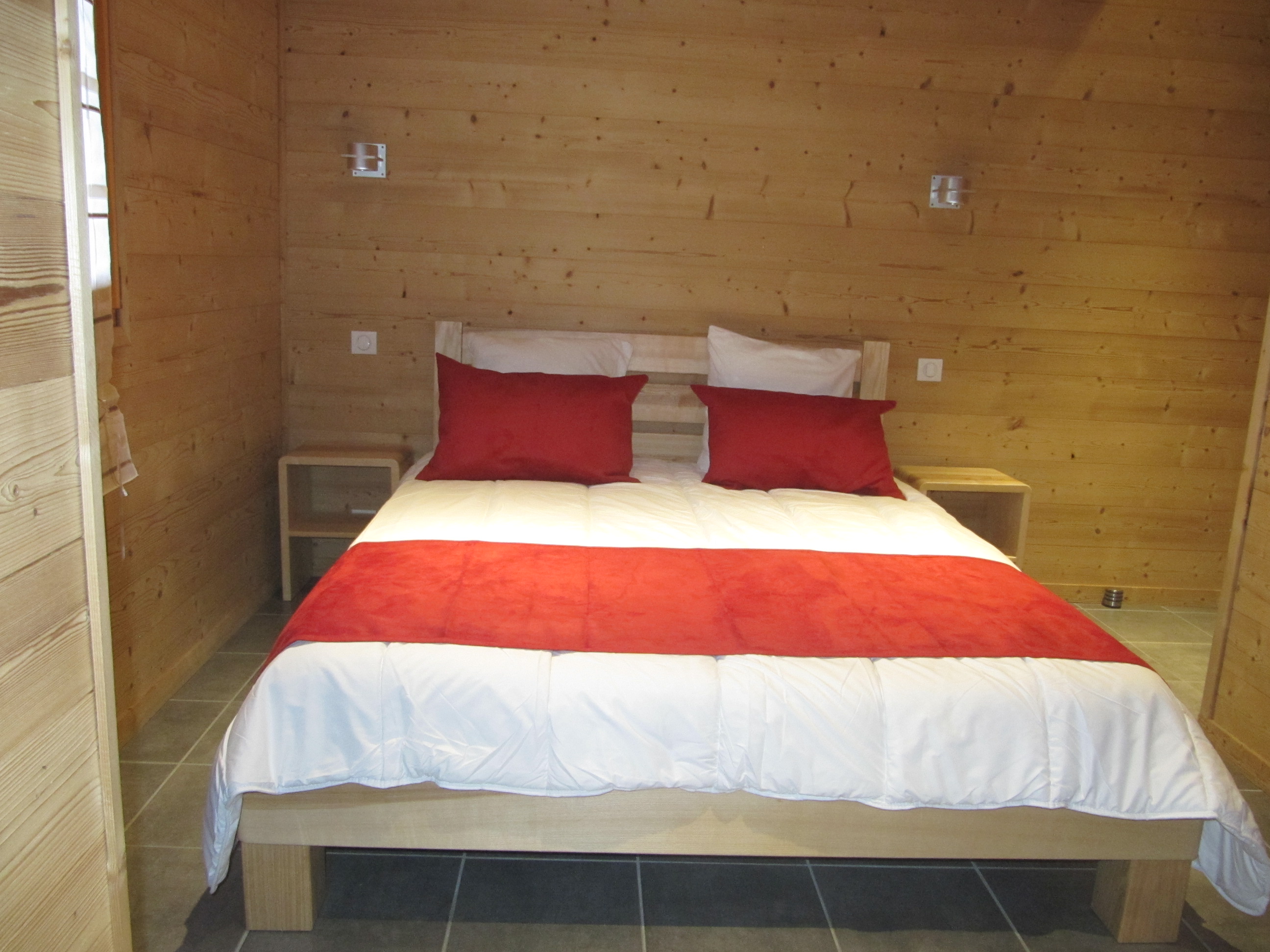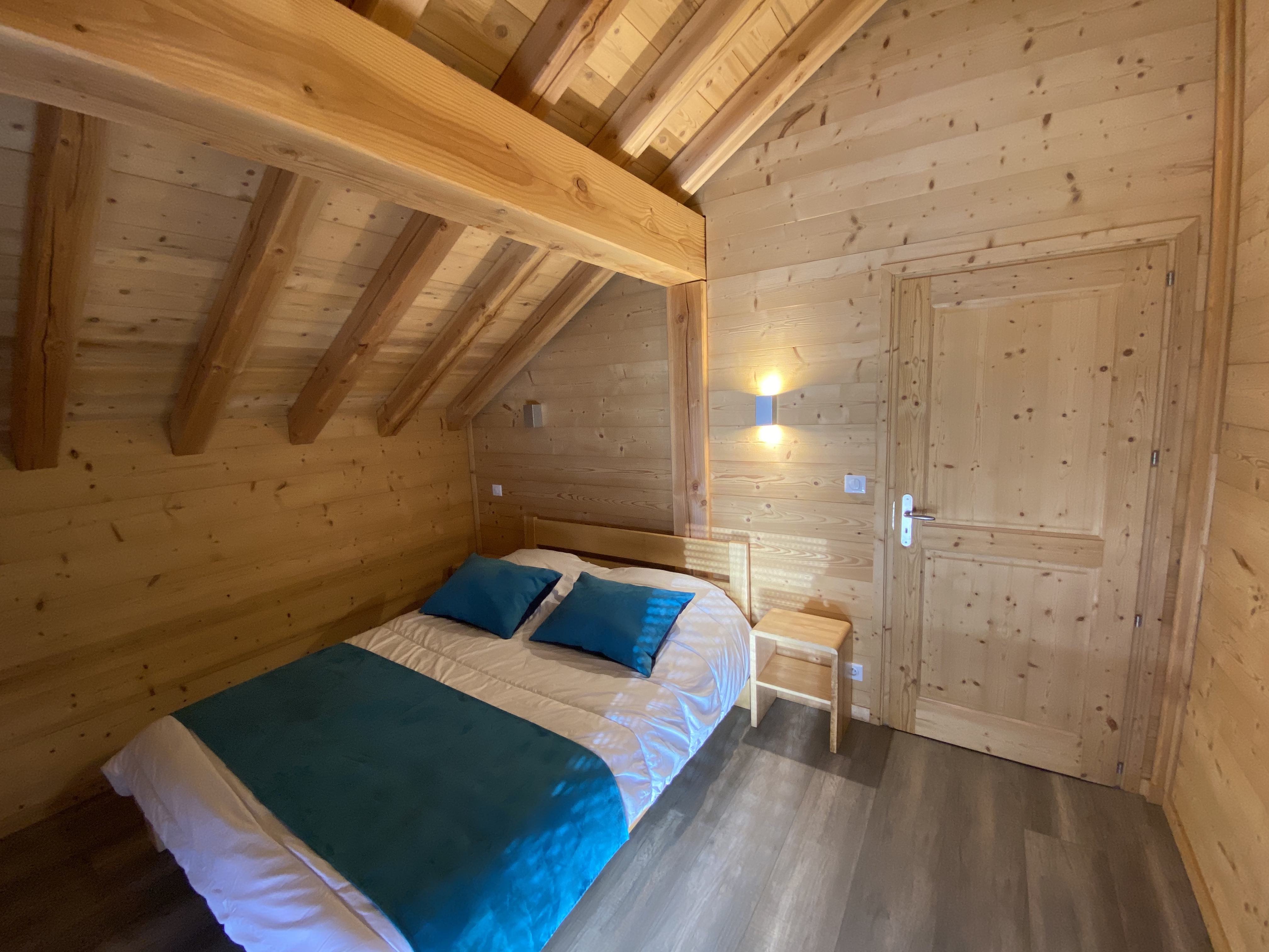 chambre 2 , 12m2 avec un lit double 160x200,rangements,porte fenêtre avec balcon - vue plein sud sur les aiguilles d'arves