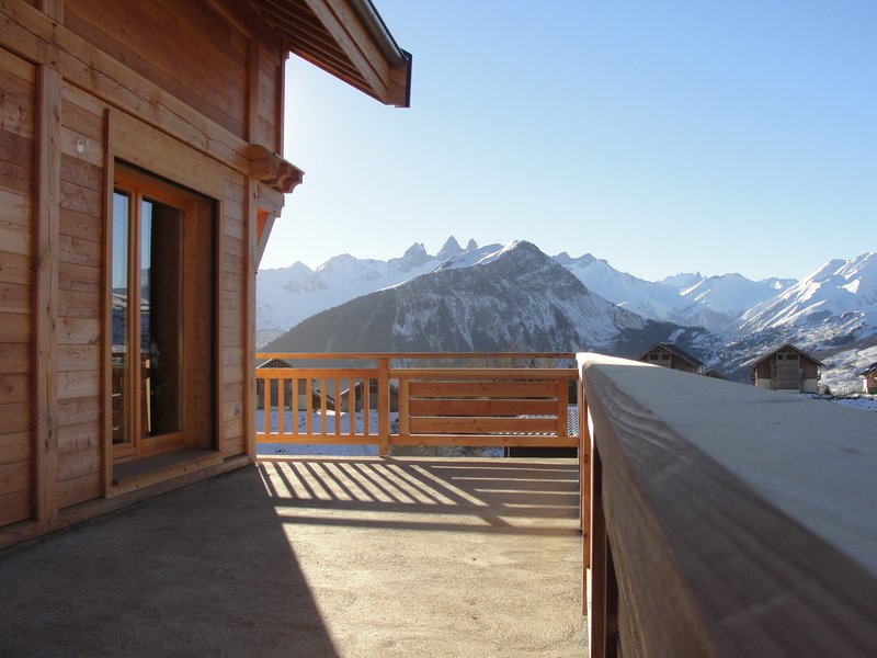 - - grande terrasse de plus de 30m2 + balcon à l'étage face aux aiguilles d'arves et au domaine des Sybelles